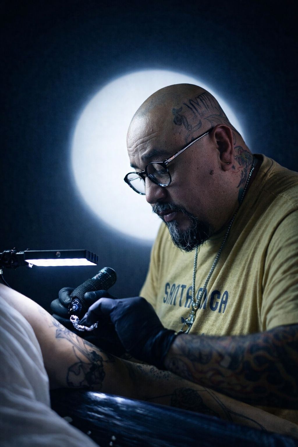 Con una propuesta centrada en el black and grey, Andrés destaca por su estilo refinado y sobrio. Cada tatuaje suyo transmite carácter, precisión y equilibrio.