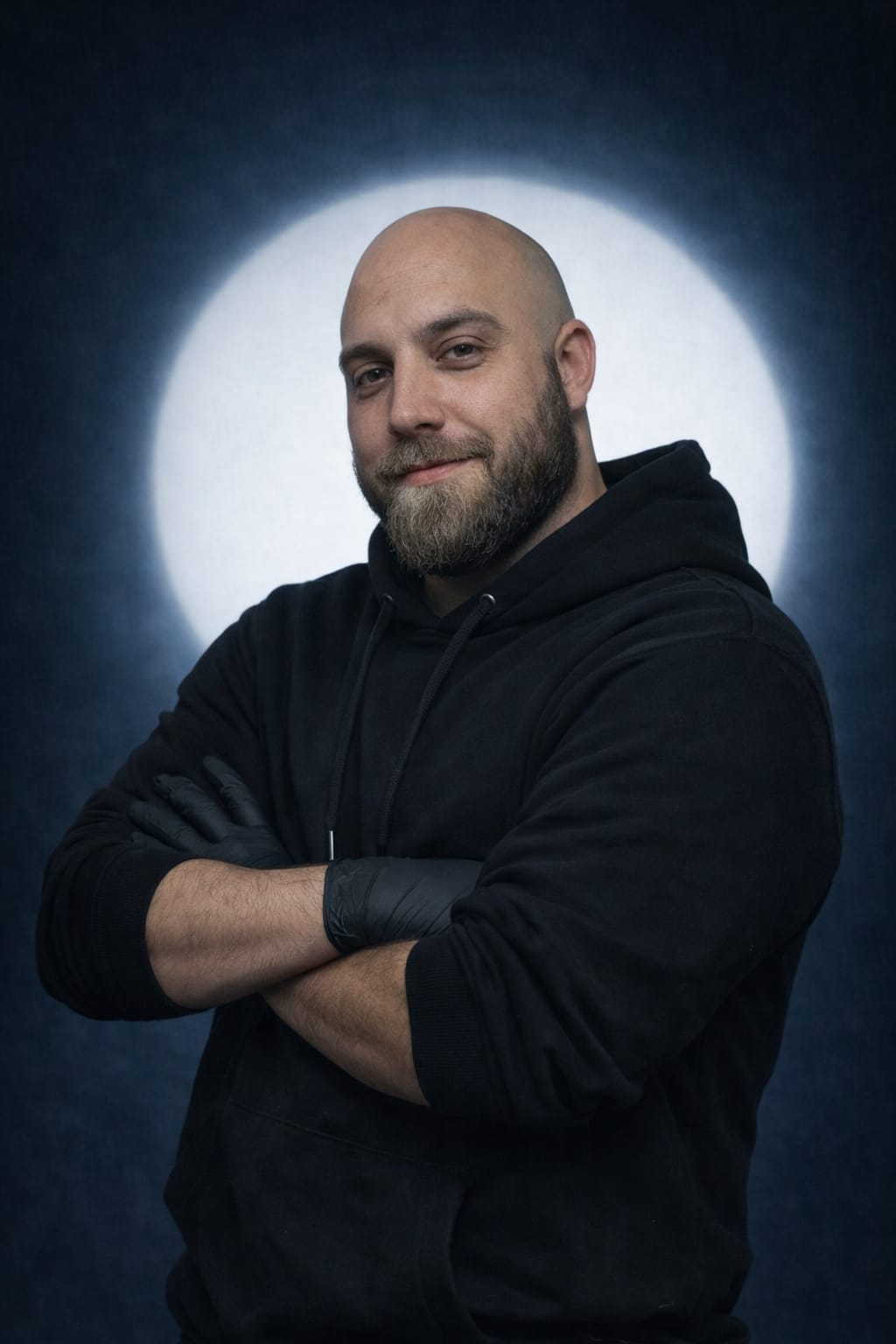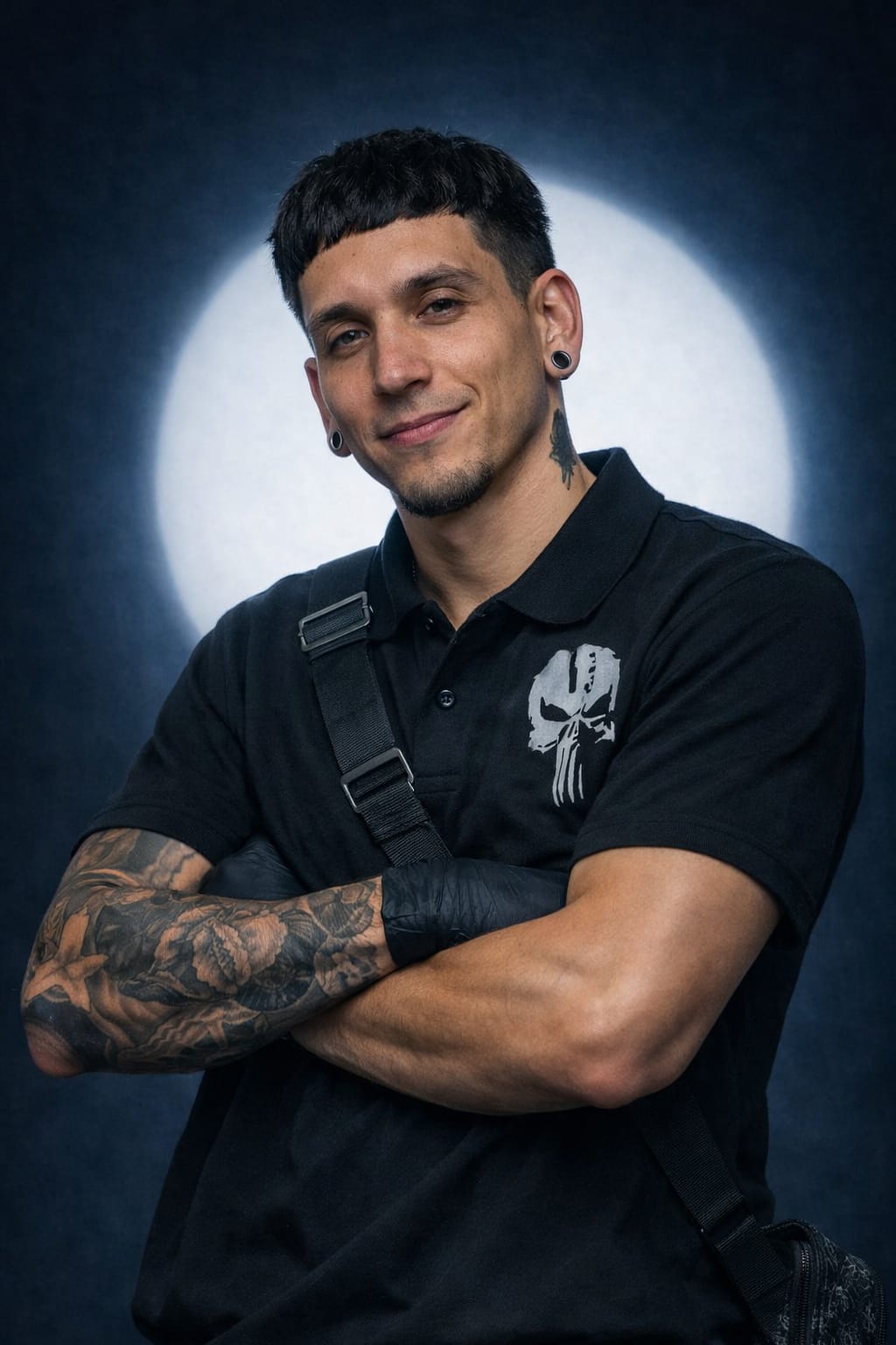 Artista enfocado en el black and grey, su técnica destaca por el equilibrio entre profundidad y contraste. Ideal para piezas sobrias, potentes y elegantes.